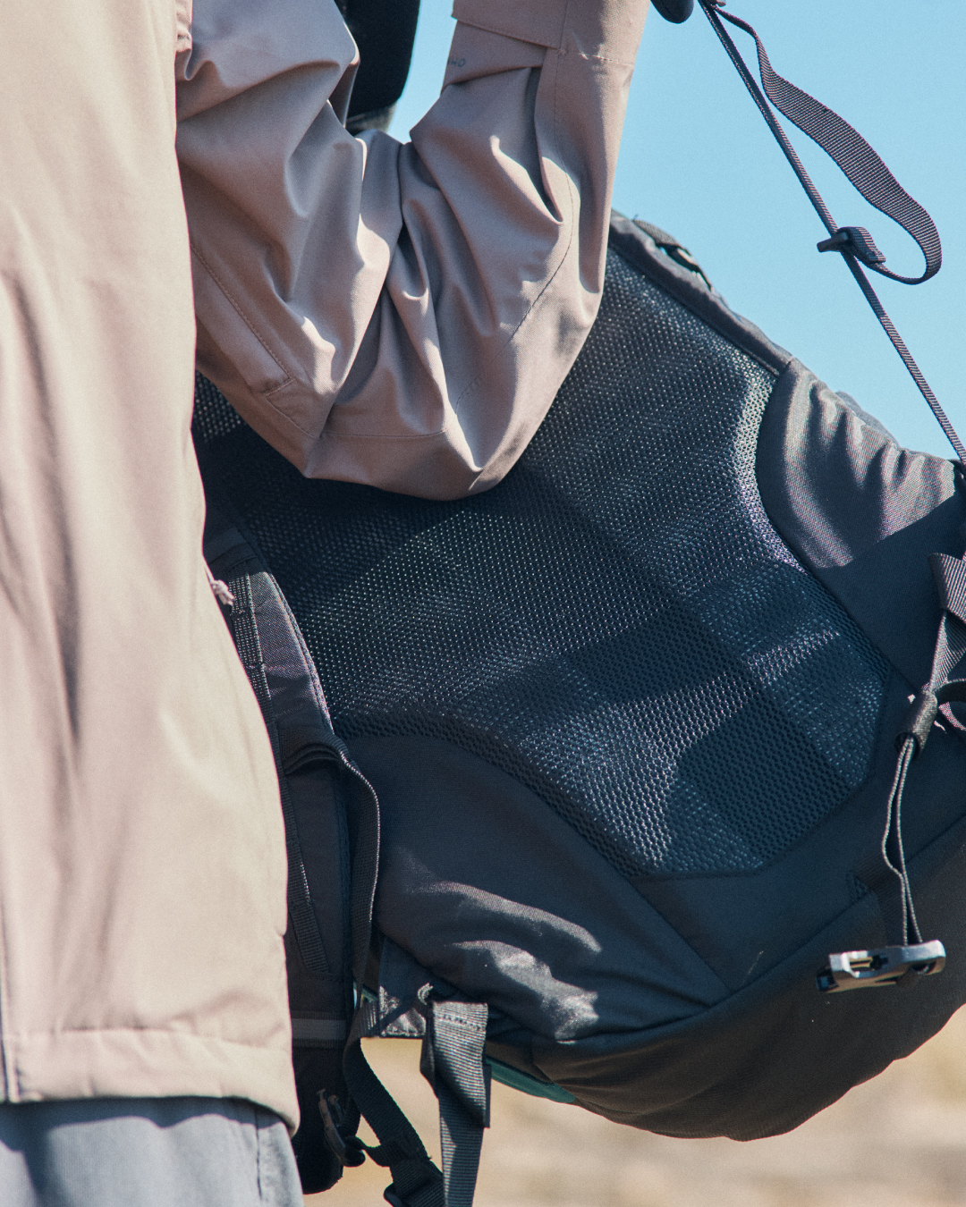 物価高が続く昨今、ギアの値上がりも目立ちますが、「ペッパーロック30L」は約16,000円で充実した機能性が驚異的。山と街をシームレスに繋ぐ汎用性が高く、とくにショルダーハーネスの設計が絶妙です。広すぎず狭すぎない幅と厚みのあるクッションが、緩やかにカーブを描いて荷重を分散し、良好な背負い心地を実現しています。