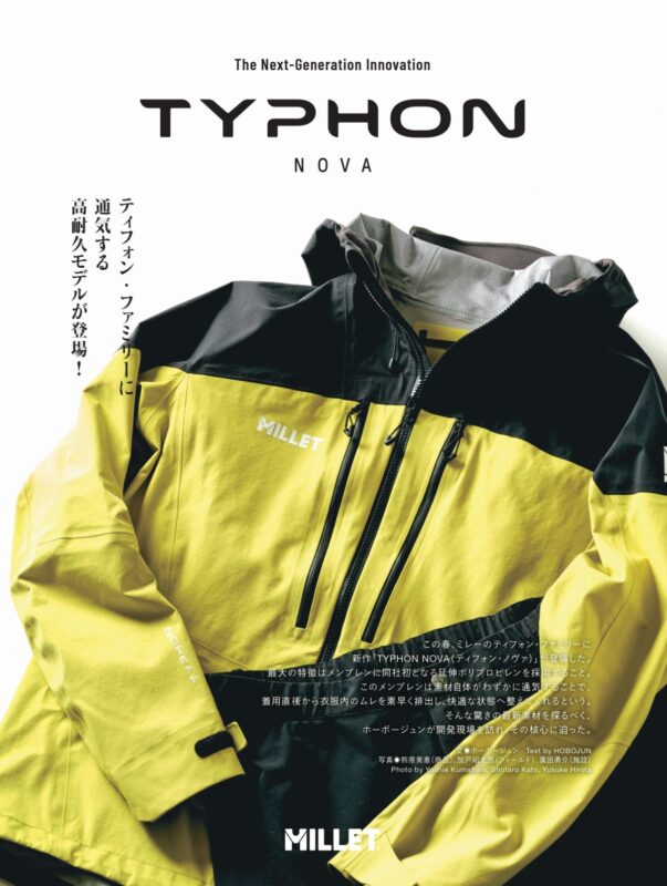 ミレーの人気レインウエア「ティフォン」シリーズに、この春、新たなモデルが登場。新作「ティフォン ノヴァ」は、同シリーズ初となる延伸ポリプロピレン製メンブレンを採用した次世代シェルです。
