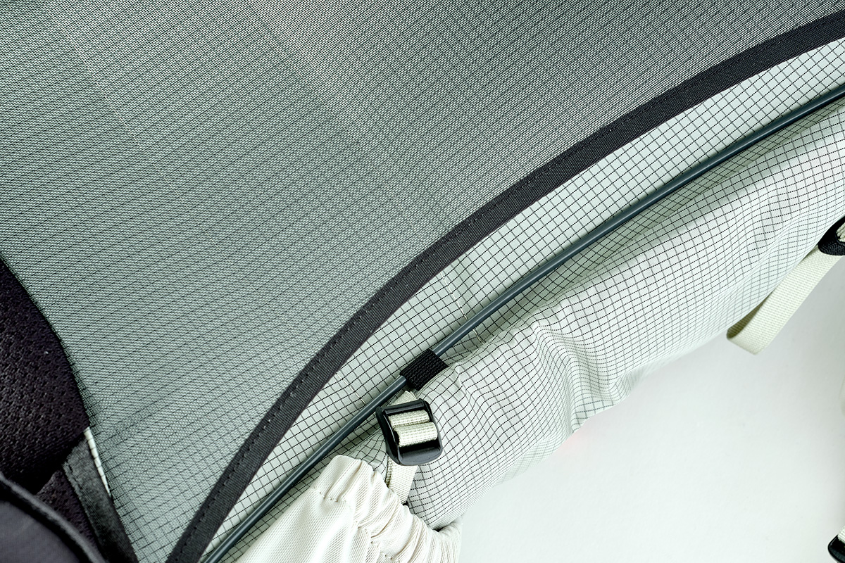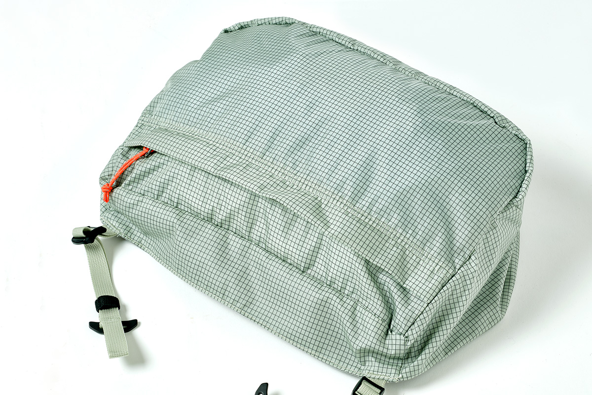 81%がリサイクル素材の100Dリップストップナイロンに、UTS(UltraTear Strength)コーティングを施し、耐摩耗・引き裂き・撥水性に優れる。