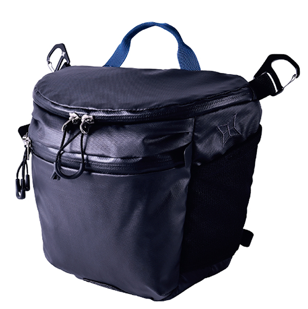 山の過酷な環境にも耐えるカメラバッグ。ALKとおなじ、水や汚れに強い軽量素材に変え、300gを切る軽さを実現。標準ズーム付きのフルサイズミラーレス一眼と交換レンズ1本がすっぽり。