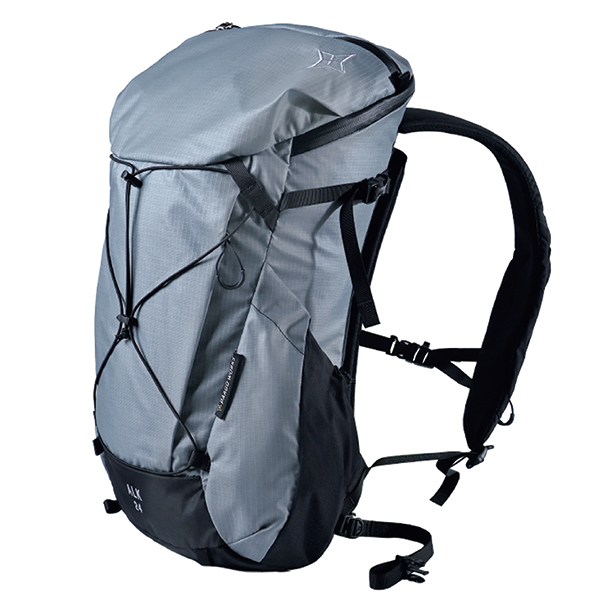 泊まり山行に対応する30L。大きく開くバックサイドオープン仕様でパッキングしやすく、バックカントリーでも使い勝手がよい。アルミフレーム内蔵で荷重を分散し、安定して背負える。