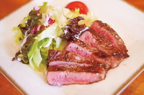自家菜園の無農薬野菜をたっぷり使った手料理が並ぶ。季節やその日の仕入れによってメニューは変わるが、メインは信州牛のステーキ。季節ごとのメニューもお楽しみに!