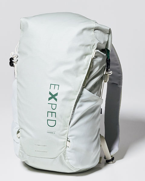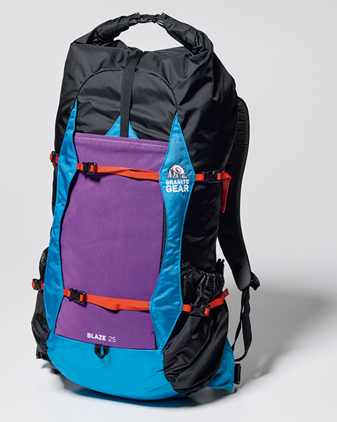 ショルダーハーネスの形状がよく、サクサク歩きたくなるフィット感あり。開口部はロールトップ式で、しかも防水ライナーを内蔵した完全防水。天候が安定しない季節でも安心だ。ヌメっとした質感の本体は、岩場で擦っても問題ない丈夫さを備えている。