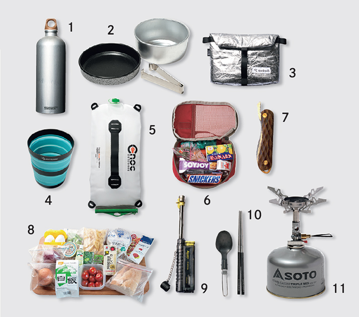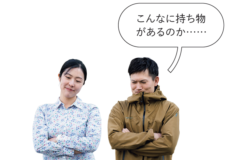 まずふたりに見てもらうのが、テント泊装備の基本構成だ。