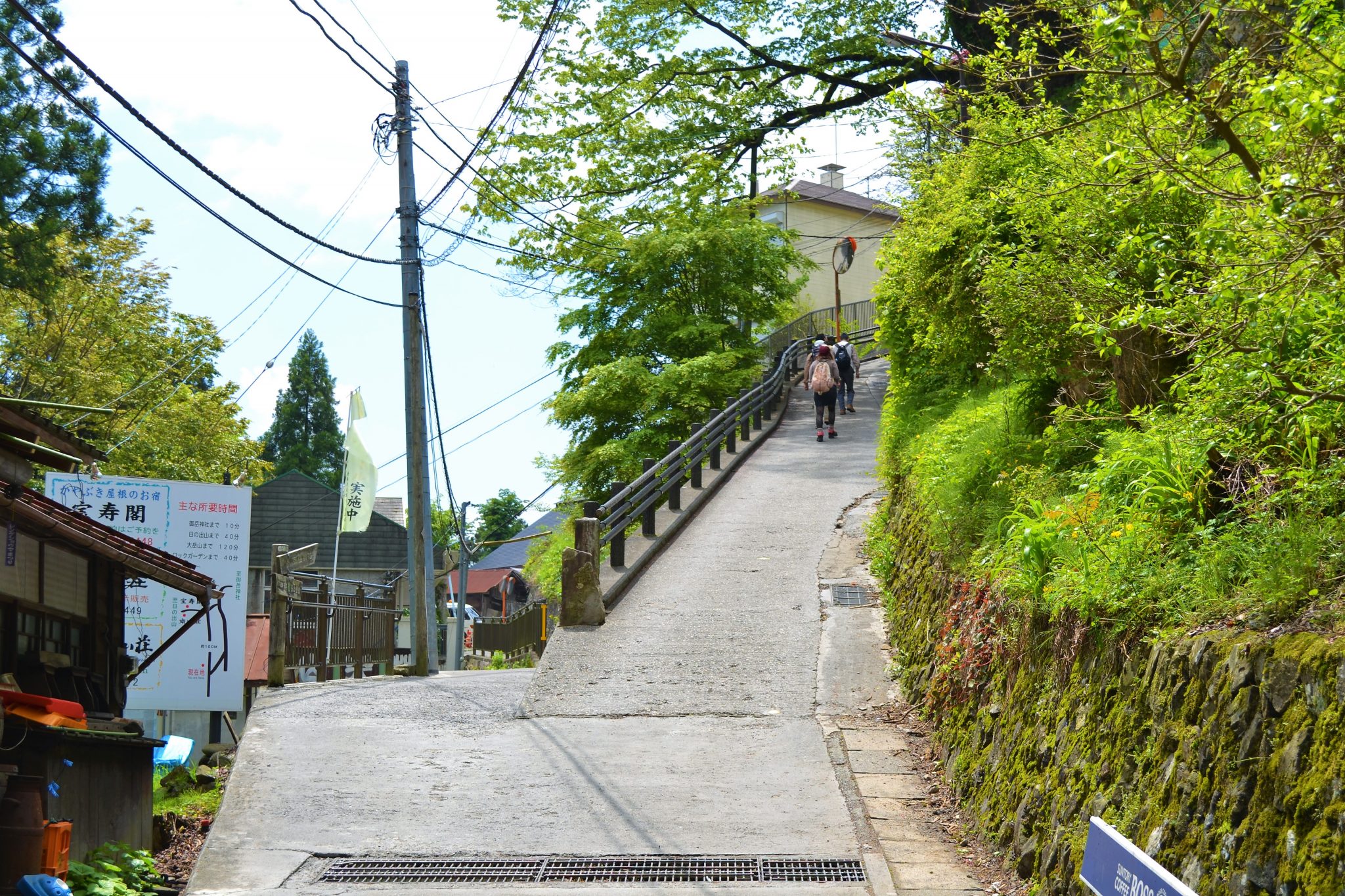 御岳山駅から歩き始めると左上に御岳の集落が見えてくる。武蔵御嶽神社へ信者を誘う御師(おし/おんし)が住む集落として知られている。