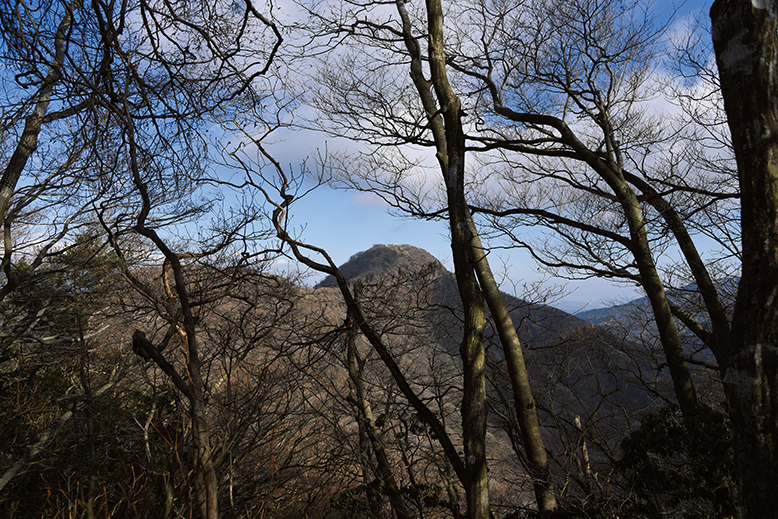 公時神社分岐から山頂までは40分。日当たりのいい稜線をたどって進む。要所では大涌谷から神山、駒ヶ岳の迫力ある展望が楽しめる展望の道でもある。