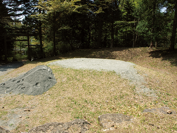 仙石(せんごく)バス停から国道135号線を御殿場方面へ進む。歩道が造られているのでそこを歩こう。しばらく行くと右に金時山へ向かう道があるが、ここは無視して直進する。15分ほど歩くと金時神社入口バス停に到着。ここを右へ入ると、公時(きんとき)神社の駐車場から境内に入る。金太郎伝説が残る神社で金太郎がクマと相撲を取ったと伝わる土俵があり、マサカリも祀られている。