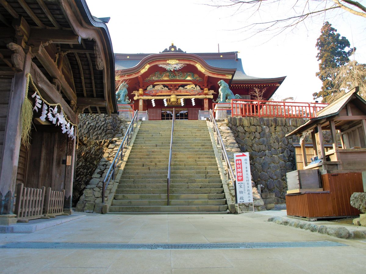 ここを抜けて鳥居をくぐったら長い石段を登る。長尾平・大岳山方面との分岐になる石段下に出て、まずはこの石段を登って御岳山の山頂へ。石段の終点が御岳山で、武蔵御嶽神社が祀られている。参拝したら、石段を下って大岳山方面へ向かおう。