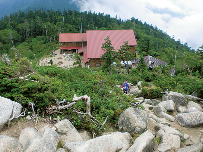 前方に建物の屋根が見えてきたら西穂山荘に到着。ここは年中無休、365日営業する山小屋だ。ここでは日帰りの日程を設定したが、時間があればここに1泊するのも楽しい。テラスで休憩したら、独標に向かおう。