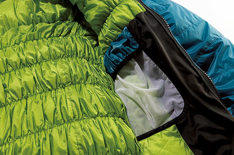湿気の影響が気になる部位に化繊中綿を採用したダウンジャケット。