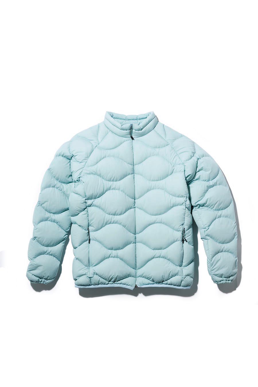 波形のキルティングステッチが特徴的な軽量ダウンジャケット。身頃はスリムなスタイルで、腕まわりには若干の余裕を持たせたカッティングを採用した。両サイドには、コンシールジッパーを使ったポケットがつく。