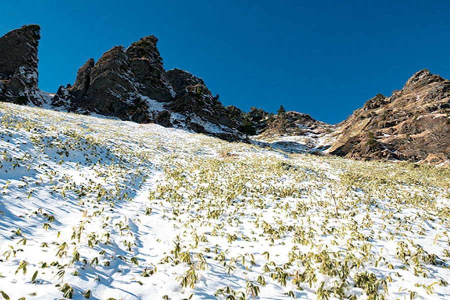取材時から季節が進んだ厳冬期の登山に不安があるのなら、車坂峠からのルートも考慮に入れるように。往復のコースタイムは3時間程度。草すべりのような登りもないのでより安心だ。