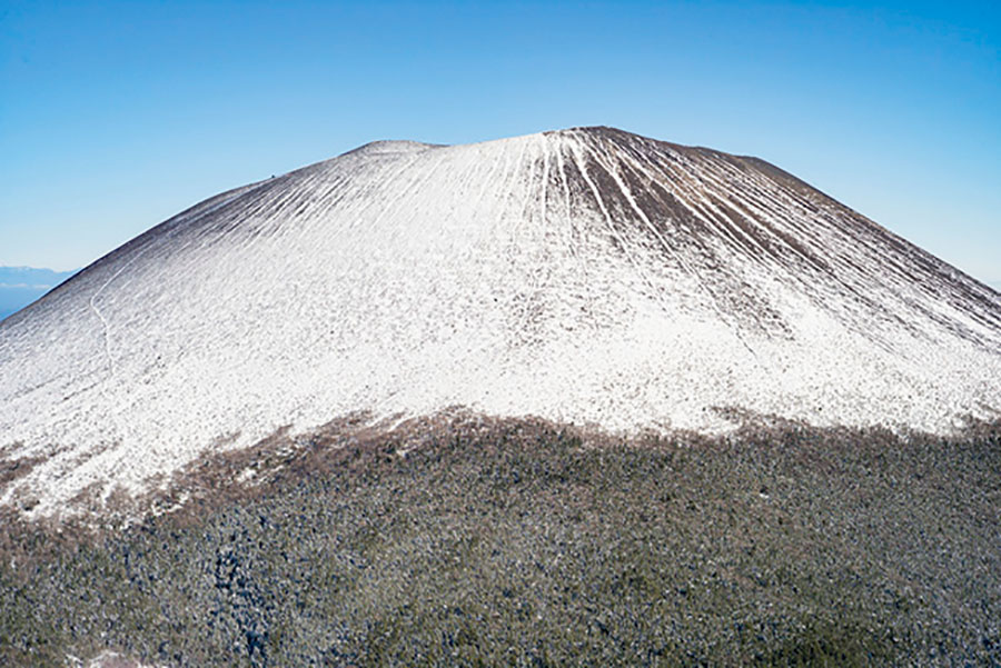 ⑧トーミの頭は展望抜群。そこから浅間山の山容を望む。東から南のほうへと視線を向ければ、遥か先の地平線に富士山の姿を捉えることも。