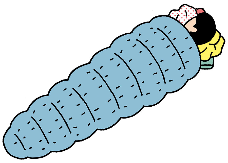 スリーピングバッグといえばマミー型が一般的。その軽量モデルもあるが、さらなる軽量化を図るのであれば、筆頭はキルトだろう。