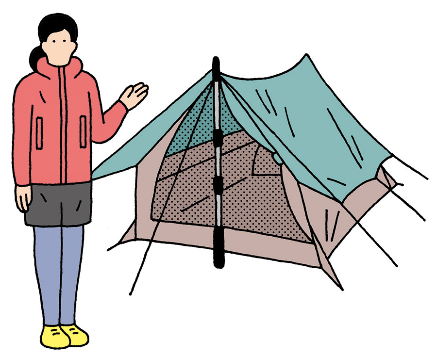 ただ、そのぶん密閉性は低いため、そこが気になる人はツエルトがいいだろう。いずれもトレッキングポールを支柱にして設営するのでコツはいるが、慣れれば設営も撤収もラクチン。