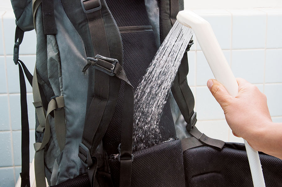 山登りで使っているバックパックなら使用後の手入れに洗剤を使う必要はあまりないが、汚れがひどい場合はもちろん使ってもかまわない。アウトドアウエア用の洗剤は柔軟剤などの余計な成分が入っていないので安心だが、台所用の中性洗剤も使用可能だ。洗剤を使う場合は、成分が残らないよう、すすぎをしっかりと。
