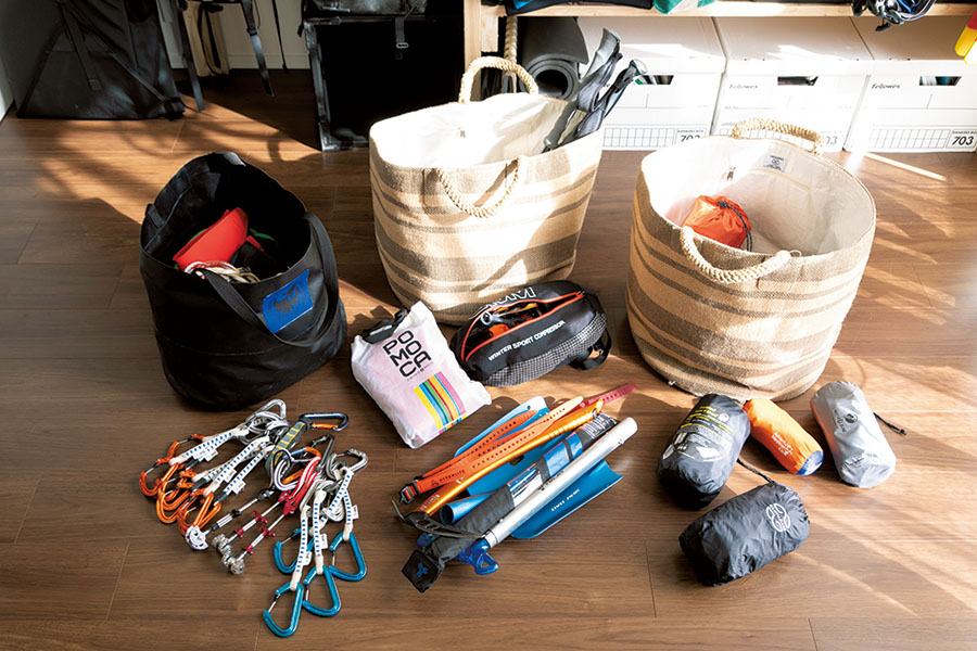 彼が店長を務める「ムーンライトギア」のコンセプトは、軽装備を重視したウルトラライトなアウトドアの提案。「仕事柄、取り扱い商品を実際に使って、機能・性能を試さなくてはいけないことも多々あるので、複数持ているものは、工夫して収納しています」