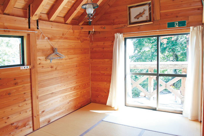 2階の東向きの客室は、黒部湖を望むことができ、ベランダがついて落ち着くにはベストな場所。客室はすべて2階にあるつくりになっている。