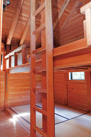 2階西側の客室は、大人数が入ることが想定された部屋。2段ベッド状になっており、一度に10人が泊まることができる。