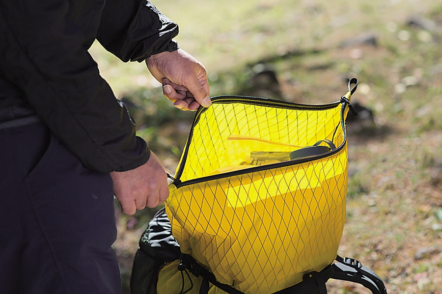 斬新なフォルム、特徴的な開口部、ワイドなショルダーハーネス、独自のセンターコンプレッション方式など、プロダクトデザイナーとして数多くのバックパックデザインに関わってきた「マイスター」らしい、オリジナリティあふれるアイデアの塊。ファストパッキングだけでなくハイキングや自転車にも調子良さそうだが、それって全部徹さんの好きなアクティビティだったり……。