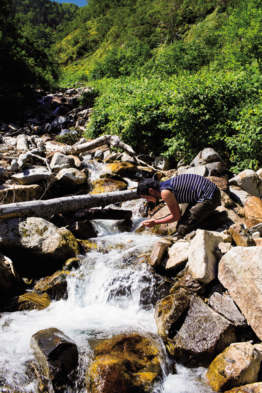 昼寝から目覚めると、池ちゃんが黙々と石を積んでいた。尖った石を2個3個。ボルダリングに飽きたクライマーが、河原の石で遊び始めたのがきっかけで、一部で流行っているらしい。