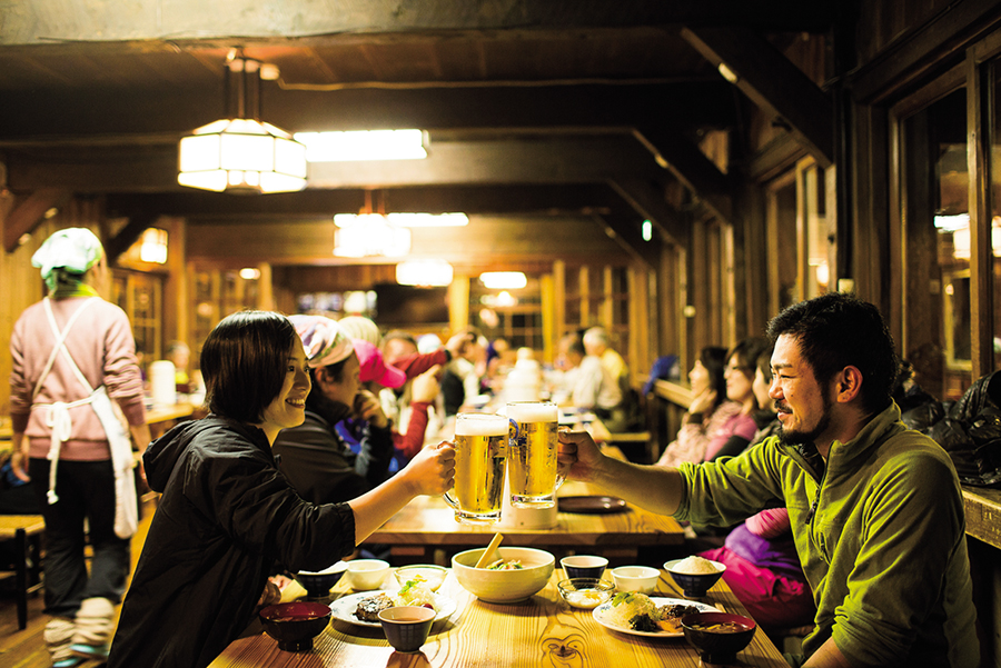 大天荘に着くと、迷わず生ビール。空はどこまでも青く、空気は乾いている。喉もカラカラだ。目の前には絶景。こういう所で飲む生ビールがどんな味か、うまく書けない。