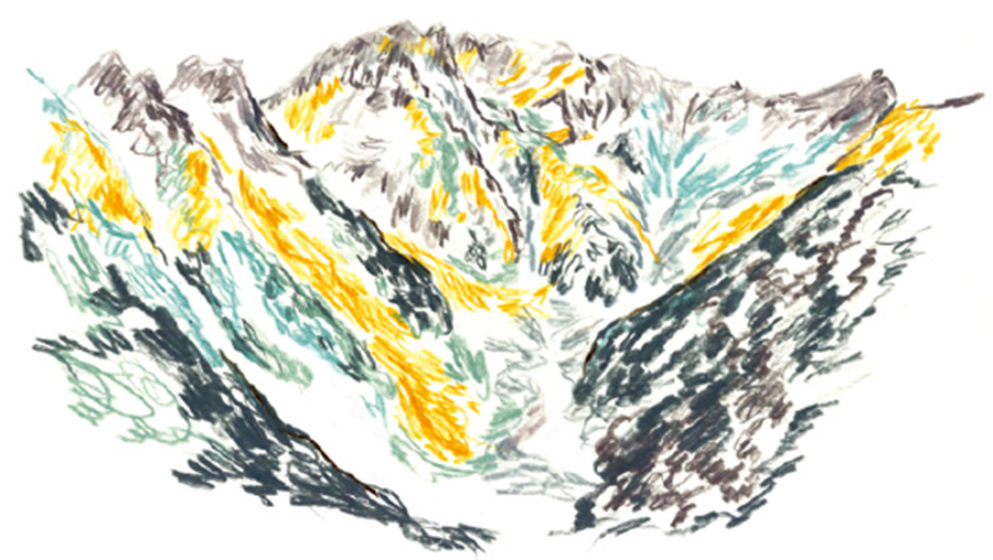 マオは常念岳に向かってスケッチブックを広げた。