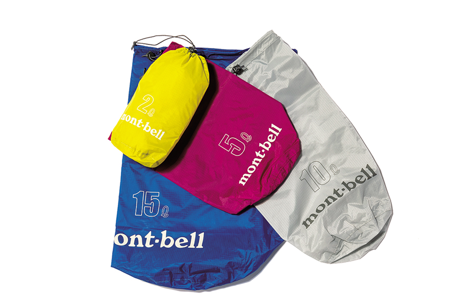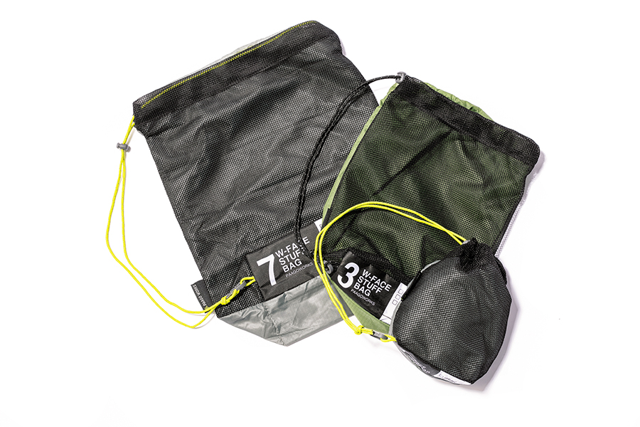 「STUFF」とは、荷物や持ち物のこと。ゆえに「STUFF BAG」は荷物を入れる小分け袋を意味する。登山においては極薄軽量を基本に、圧縮、色別、クッション入り、2ルームなど、用途ごとの袋が用意されている。