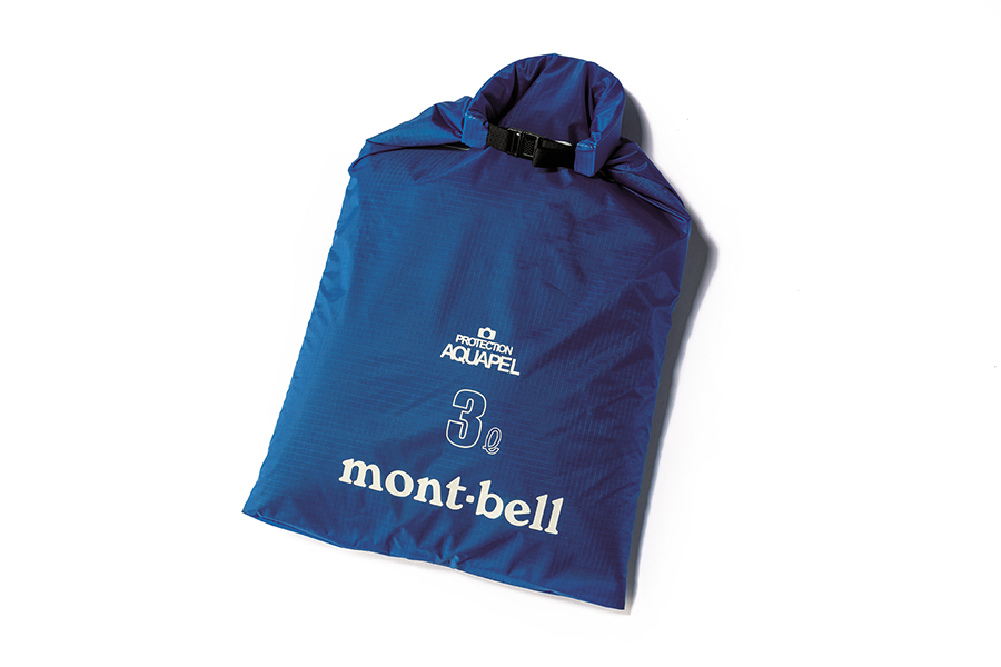 荷物の増えるテント泊で、かさ張りを抑えたいときに役立つのが圧縮袋。袋に入れた寝袋や防寒着をフタと底布を繋ぐストラップを引いて圧縮。パッキング下手なビギナーでも、パックにスペースをつくれる。