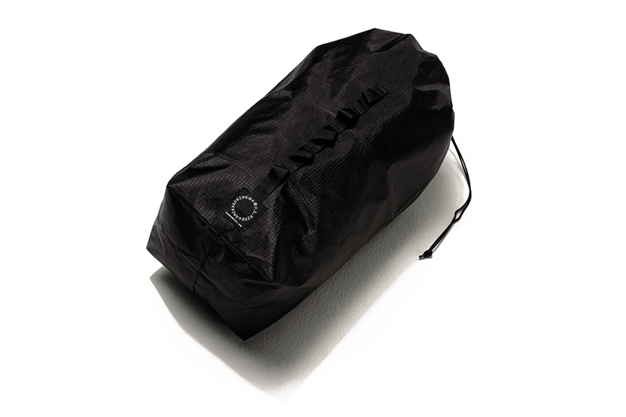 本体に備わったデイジーチェーンにストラップを通して、小型パックに外付けして身軽にテント泊してみよう! というコンセプトの容量9ℓのスタッフバッグ。素材は濡れに強いX-Pac。
