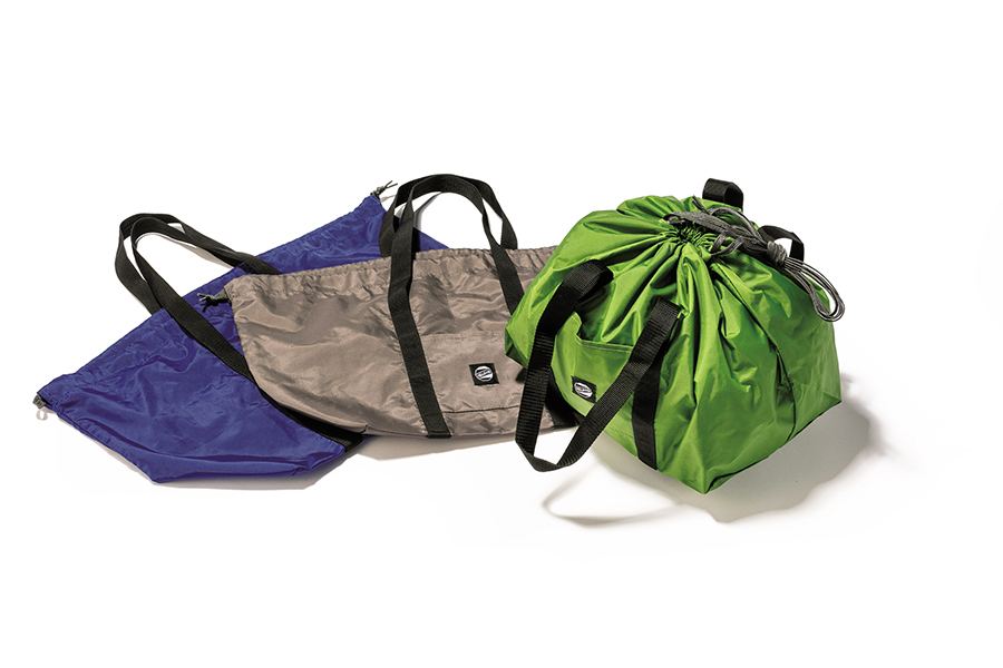 収納すると手のひらサイズのエコバッグ。下山後に温泉へ立ち寄る際の着替えを入れたり、山小屋やテント泊の移動時に貴重品や防寒着を収納。スタッフバッグよりも持ち運びがラクで、用途はアイデア次第!