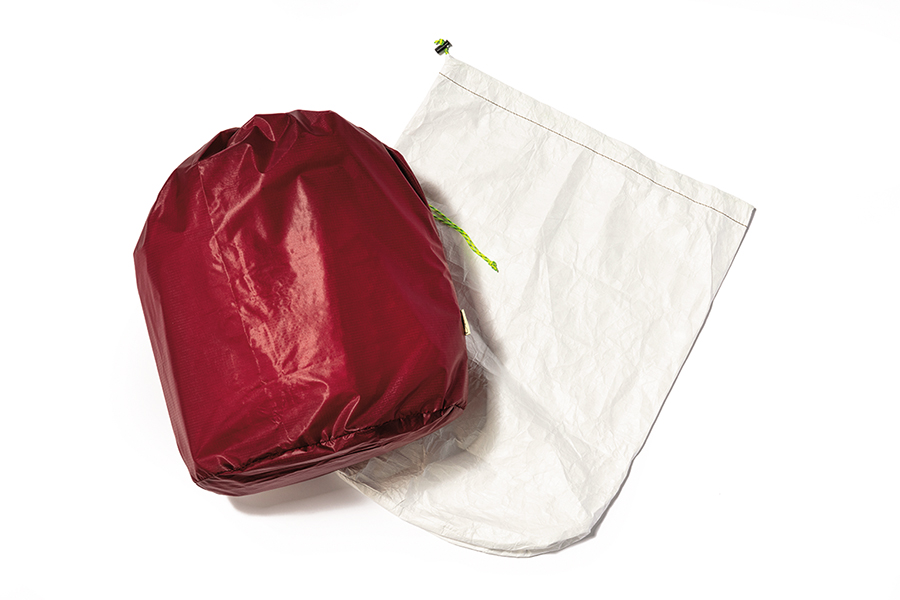 キューベンファイバーを生地に使用した、驚くほど軽く、丈夫なスタッフバッグ。厚さは2種類あり、白色がより薄く、軽い。完全ではないが防水性にも優れ、濡れに強い。大きさはS1.7ℓ、M3.05ℓ、L4.4ℓ。