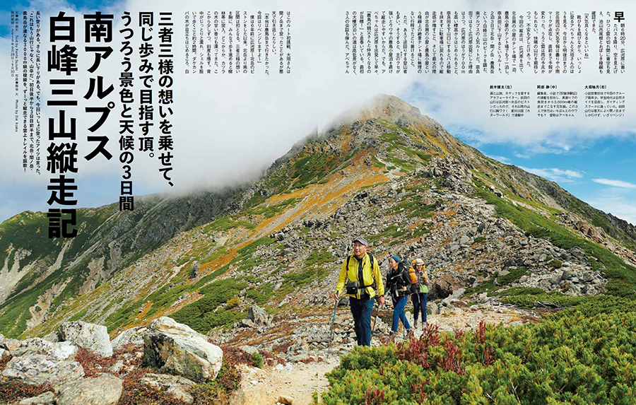 三者三様の想いを乗せて、同じ歩みで目指す頂。3人で歩いた南アルプス白峰三山。