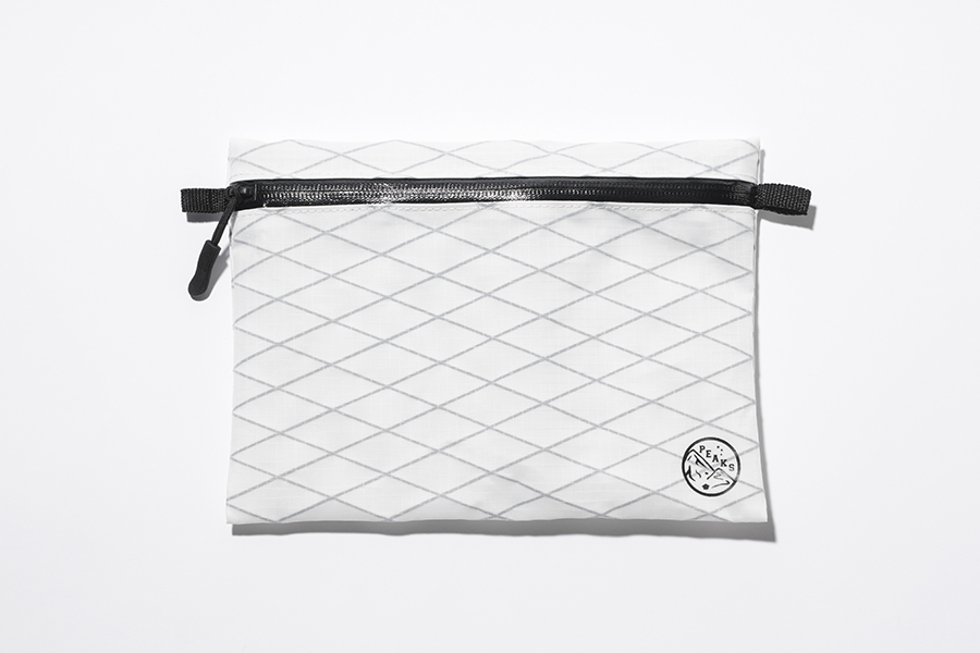 写真は2019年3月号付録の「パラコードマルチストラップ」を取り付けたようす。大柄な人でなければサコッシュとしてちょうどいい長さで使用できるのでお試しを! 正面右下には『PEAKS』ロゴをさりげなくプリント。