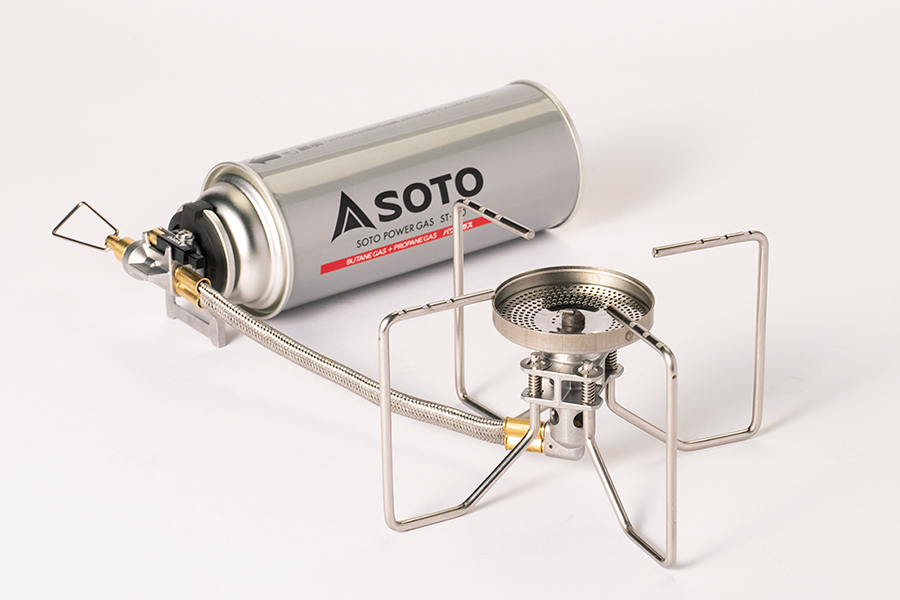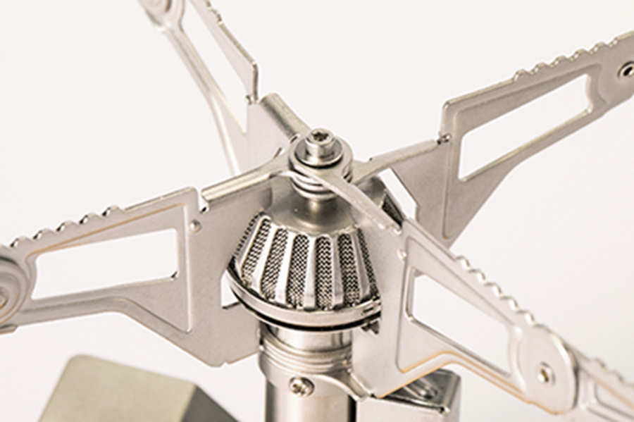 ガスバーナーは外気温の低下や長時間使用で火力が落ちてくる。低温下では缶の中の液化ガスが気化しにくくなり、長時間使用時は気化熱によりガス缶内が冷やされることで、バーナーヘッドへのガス供給量が減ってしまうためだ。これを防ぐのがレギュレーター機能。ガス調圧機構により、ガスの出力を一定に保てるよう制御する働きをもつ。
