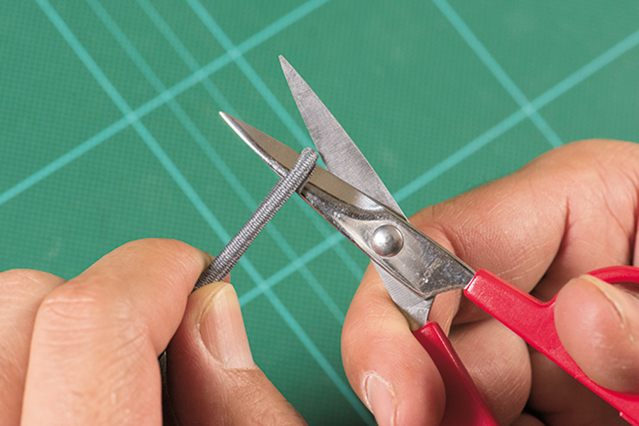 35㎝の長さでカットするので、定規を使ってコードの長さを測る。メジャーでも代用可。
