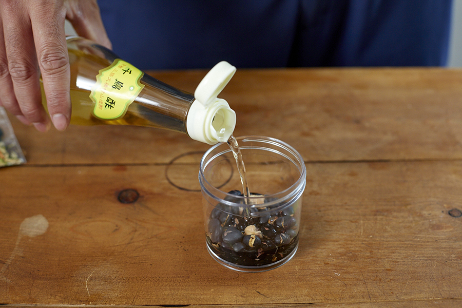 自宅で仕込んでくれば、豆の中まで味がしっかり染みる。
