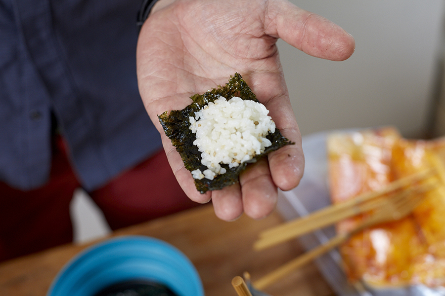 ❷20分経ってごはんができたら、韓国のりで適量を巻いてできあがり!