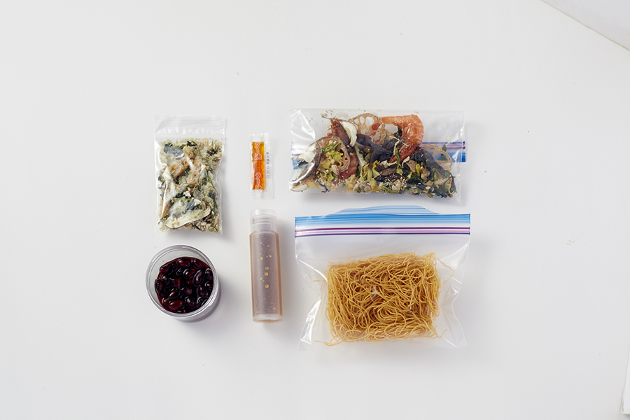 調味料と食べたい乾物を事前に合わせ、お湯を注ぐだけ。