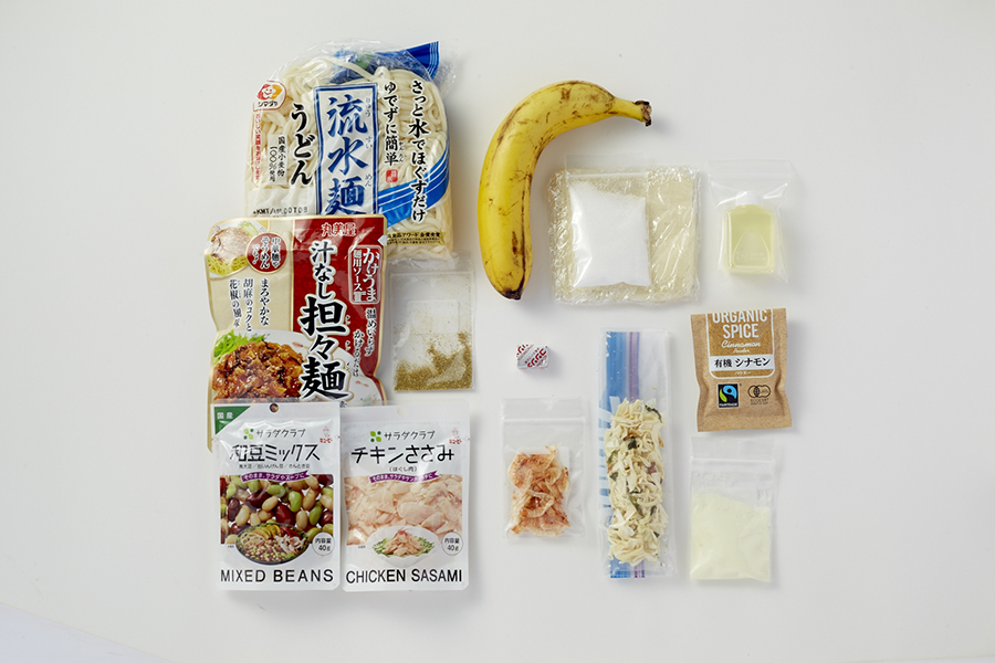 長い縦走では食べることへの執着を減らすけど、短い山旅なら行き先と同じくらいなにを食べるかを考えるのが楽しいですね。日々目にする食材から「これ山でなにに使えるだろう?」とつい想像してしまうんですが、たとえば今回のクレープも、具材を潰した甘納豆としゃぶしゃぶ用の薄いお餅にすれば和風になるし、餃子の皮は茹でるとモチモチになって使い方の幅も広がる。山は持ち物が限られるので、なるべく汎用性の高い食材を持っていきます。今回の粒状パスタ「セミーニ」もそう。スープに直接入れて煮るだけのお手軽食材。しっかりお腹にたまり、和洋中に味付けも幅広くて便利。あとはアレンジができるように調味料は多めに!
