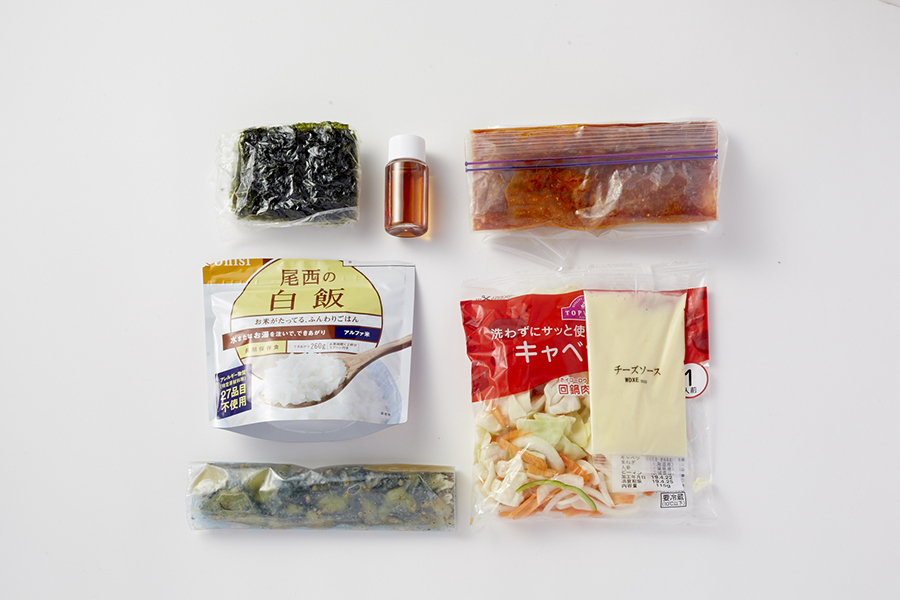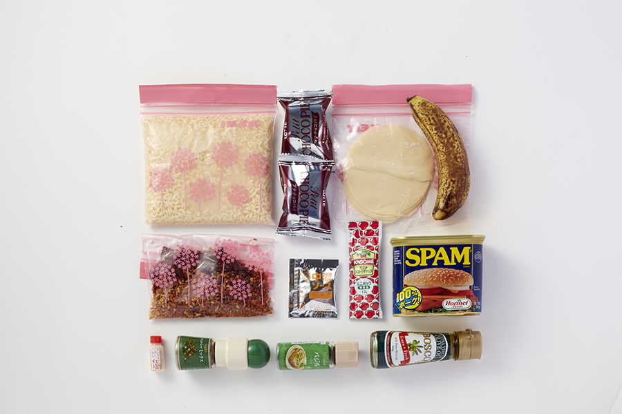 学生時代の飲食アルバイト経験から、まかないを作るようにすでにあるものからなにかを作るほうが得意。調味料とスープの素だけは種類を多めに用意し、入山前に立ち寄るコンビニで食材を見て献立を考えることが多いですね。今回は市販のチーズソースが好きでメインをタッカルビにしてみました。肉は生ではなく、コンビニでも買える火のとおった焼き鳥をバラして合わせ調味料に漬け込んだもの。生だと火入れに時間がかかるし、これなら夏でも安心。それに具材の生野菜も、スープもアルファ化米も、最悪水でも食べられるので、万が一の際にも対応できるレシピでもあります。スープに使ったキュウリは、キンパで巻いたりツマミにしても!