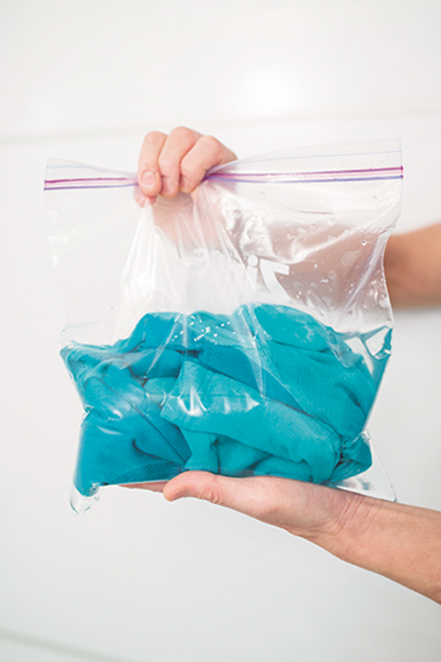 洗っているのに着用後すぐに臭うのは雑菌が原因。そんなときは保存袋に洗剤液を少し濃いめに溶かして浸け置きを。しばらく経ったらそのまま洗濯機へ。酵素系も含め漂白剤の使用はおすすめしない。