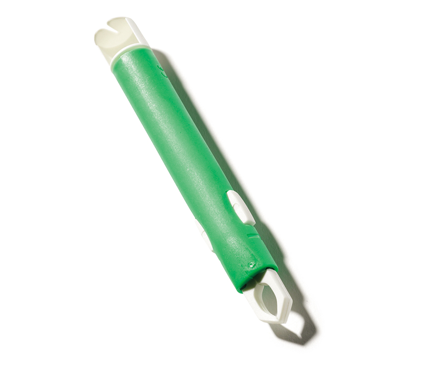 オールプラスチック製の軽量なマダニ除去器具。マダニを毛抜きやピンセットで取り除こうとすると、口や頭部が皮膚に残る可能性(感染症のリスク)がある。そのため、専用器具は必須。ダニのサイズに合わせた使い方ができるため、簡単、確実な除去が可能。