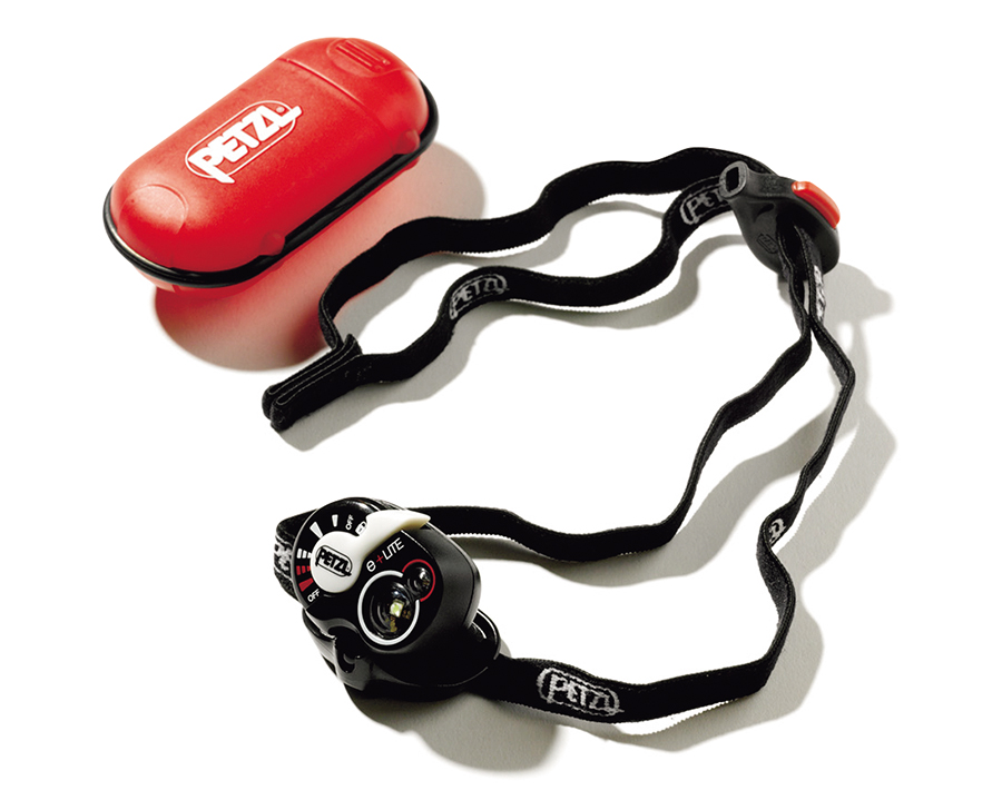 超軽量コンパクトなエマージェンシーライト。赤白2色の光と点滅など複数の照射モードがあり、緊急時のシグナルとしても使用できる。ヘッドバンドはホイッスル付き。防水性能もIPX7(水深1m で30 分間の防水)と高く、悪天下でも頼れる。