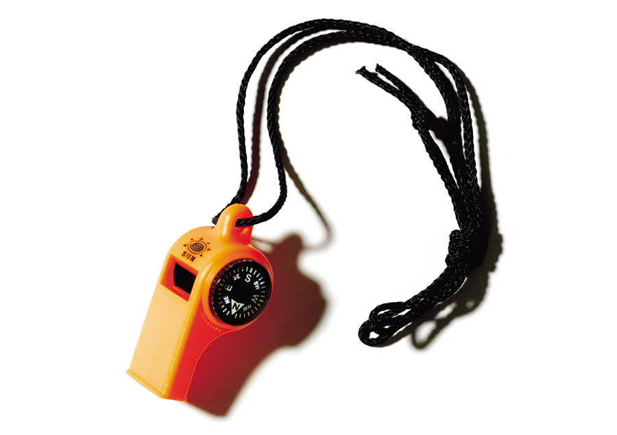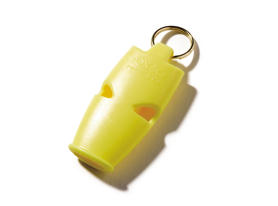 ホイッスルは、緊急時はもちろんのこと、パーティー山行で仲間と離れてしまった際にも有用なアイテム。なかでもこの笛は高性能で、110dB の高い音が約1.6㎞先まで届く。ABSプラスチック製で軽くて壊れにくいため、長く愛用できる。