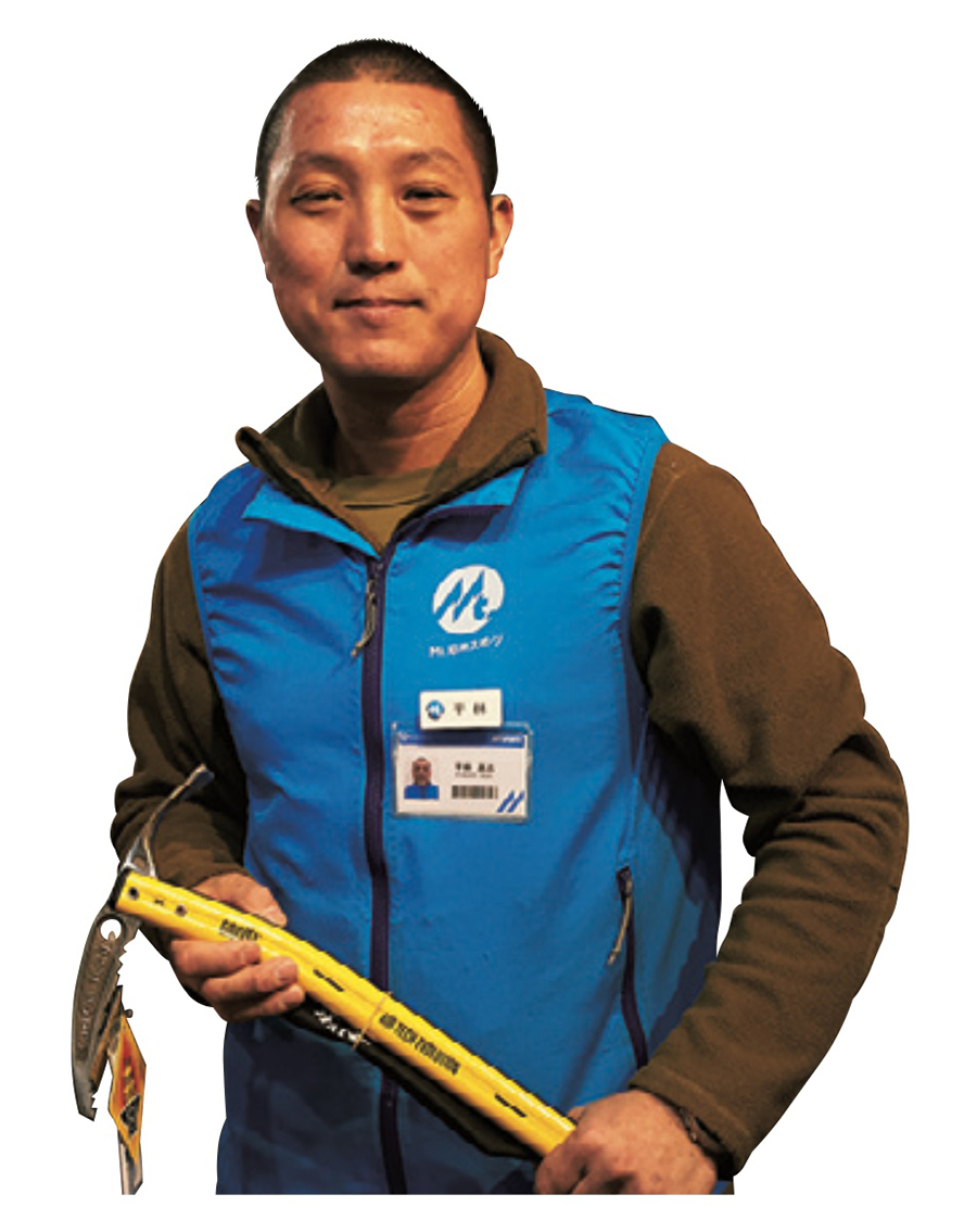石井スポーツ登山学校校長。フィールドでの活動が中心だが、登山学校の事務所でもある登山本店の店頭に立つことも。山岳ガイド資格保持。バリエーションルートガイドが得意。