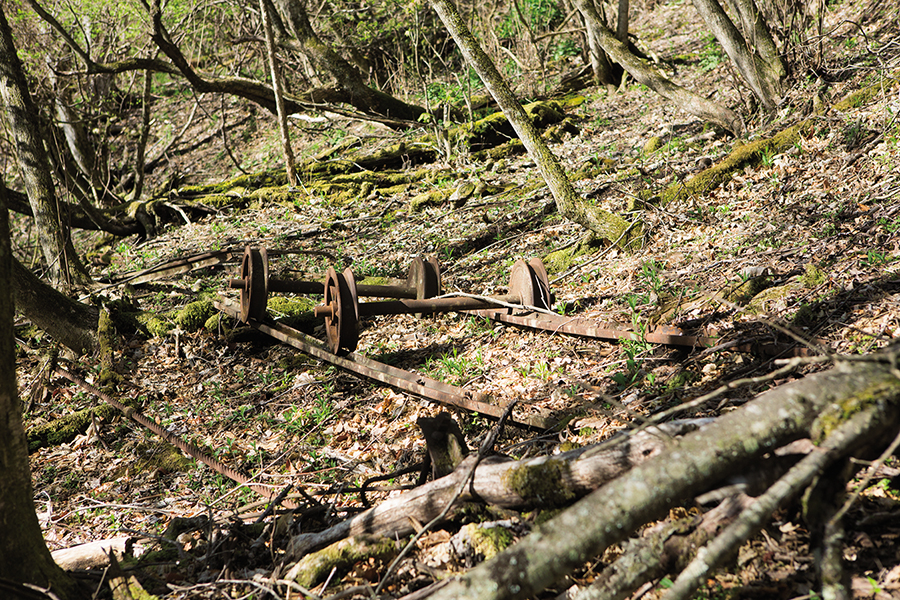 和名倉山へ続くこの登山道は、かつて伐採した木材を運び出すレールが敷かれたトロッコ道だったようで、その残骸がいたるところに転がっていて、かつての林業の繁栄を物語っていた。