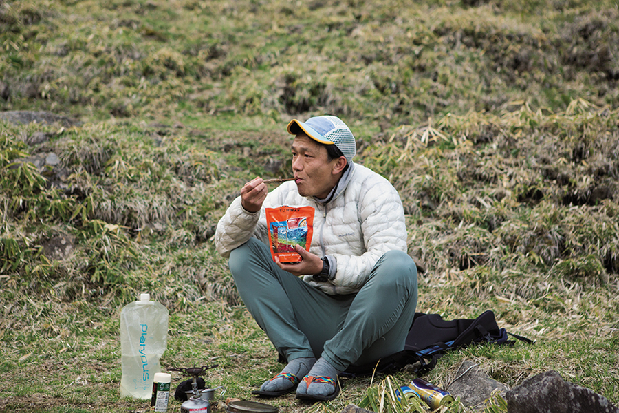 まだ薄暗い4時過ぎに起床し、コーヒーでパンを胃へ流し込む。結露でびしょ濡れのテントをバックパックに仕舞わなければいけない。重いし、ほかの装備は濡れるしで、朝から不快だ。寒いのでショーツの下にタイツを履き、ウインドシェルを羽織り、将監峠を予定どおり5時に出発した。