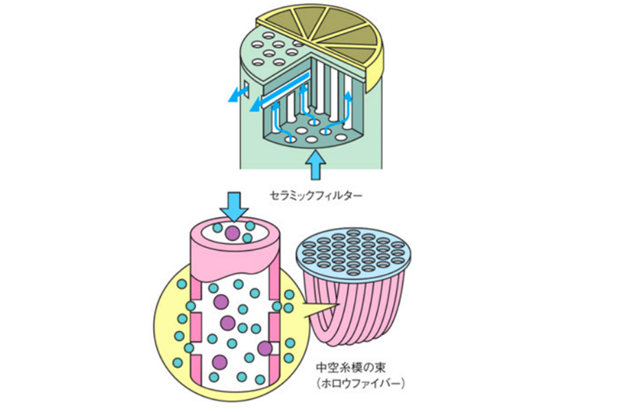 最近はフィルターに中空糸膜(ホロウファイバー)を採用するモデルが増え、よりコンパクトになっている。浄水方法は容器に水を溜めて圧力をかける方法が主流だが、多少時間はかかるけれども重力を利用して自動的に浄水が溜まるグラビティシステム対応モデルもある。
