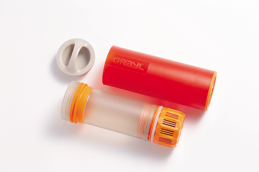 北海道での山行や秘境探検など、飲み水の確保が難しい場所では必ず持って行く相棒。浄水方法がシンプルで、プラティパスともジョイント部分がフィットするので、併用して浄水前後がひと目でわかるようにしています。